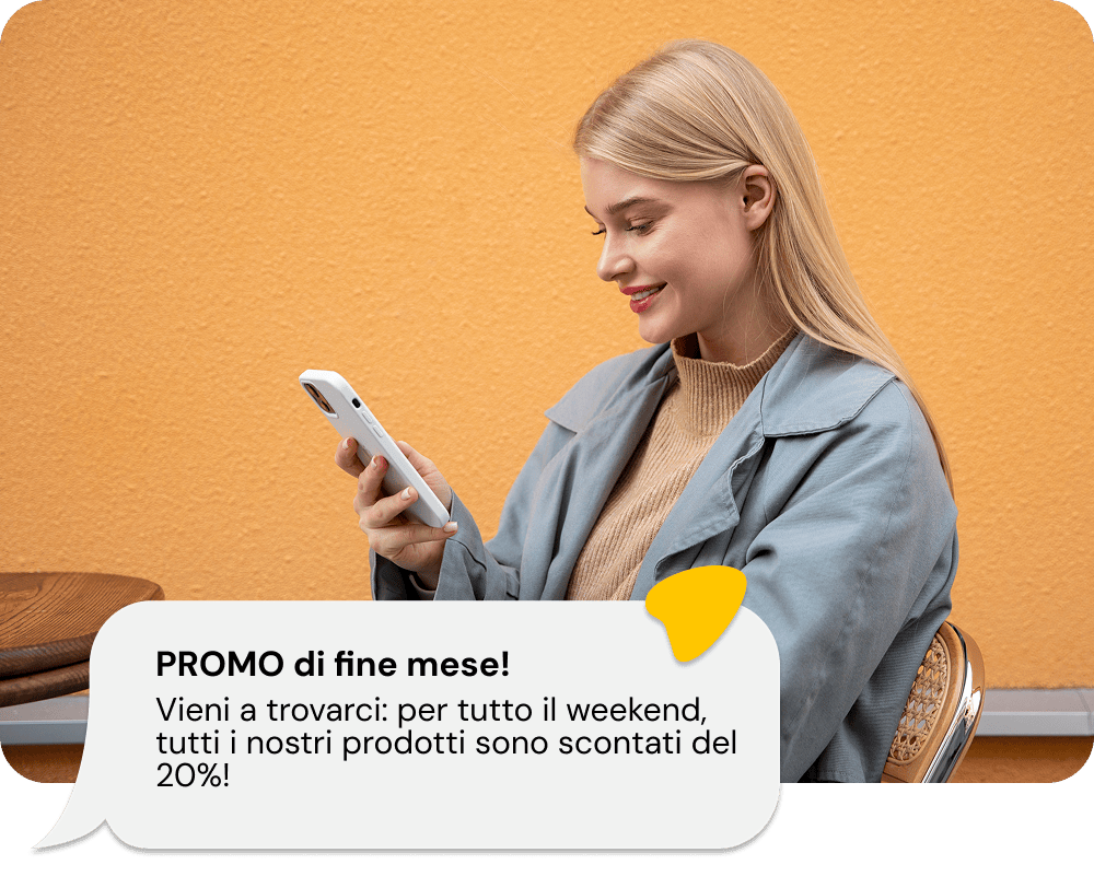 Promozione dell’ultimo minuto? Serata speciale? Nuovo prodotto in vetrina? Scrivi il messaggio, scegli a chi mandarlo, e in pochi secondi è sullo schermo del cliente. Non servono grafiche, non serve un piano editoriale. Serve solo qualcosa da dire.
