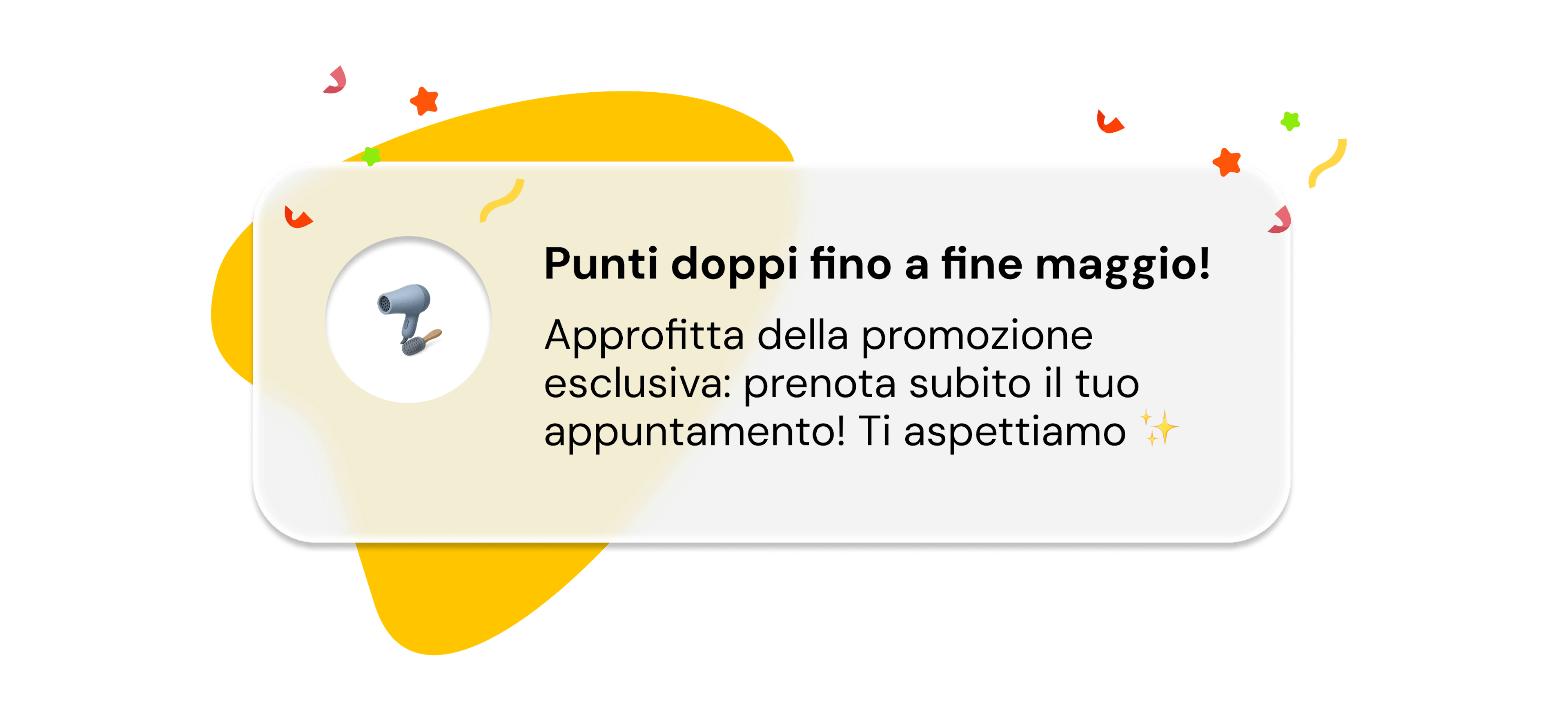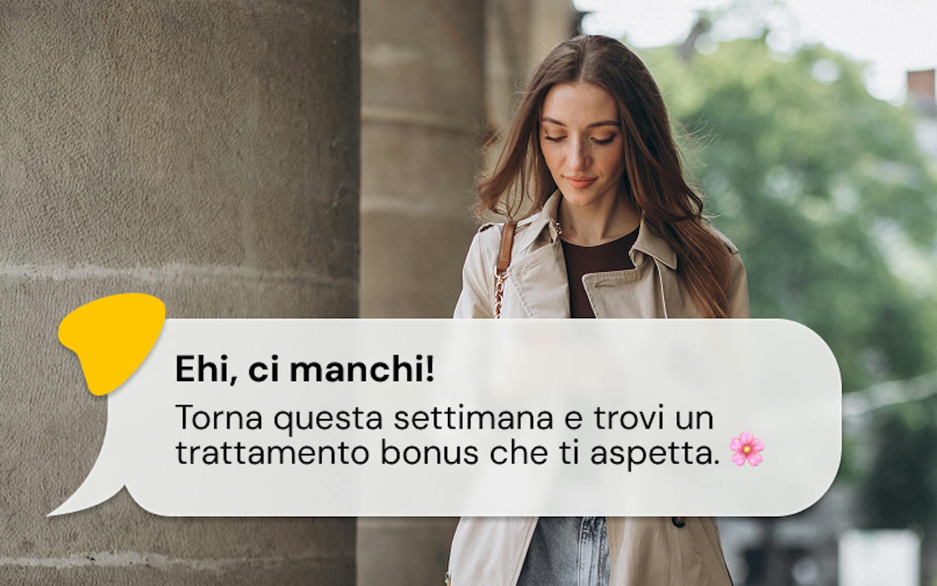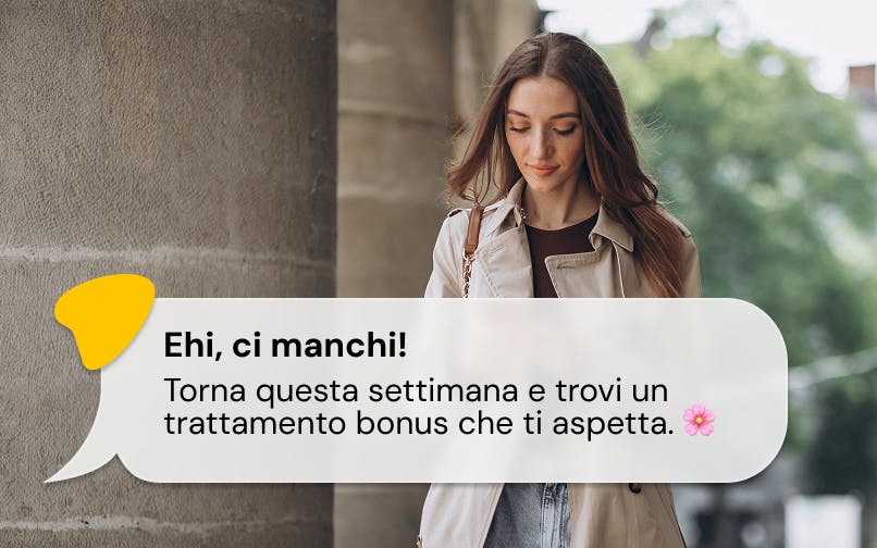 Notifica dedicata a chi manca da oltre un mese: "Ci manchi! Torna questa settimana e trovi un trattamento bonus che ti aspetta."
